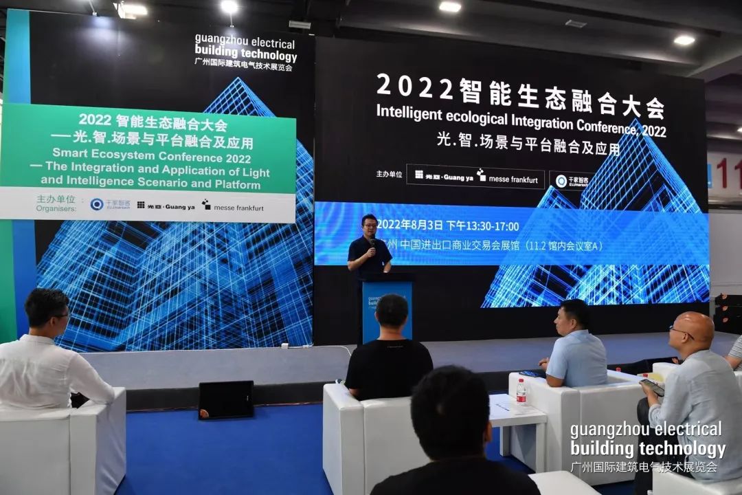 今年展会上,由广州光亚法兰克福展览有限公司、千家智客共同主办的“2022智能生态融合大会”上,围绕全屋智能生态解决方案、智慧社区与智慧人居的探索与实践、智能场景引领智能升级、5G在智慧社区中的应用与创新等话题,邀请华为全屋智能、金茂云服、绿米联创、Yeelight、中国移动智慧家庭运营中心等企业高层与智能产业专家代表共聚一堂,共同探讨新趋势下智能生态融合的最佳路径。