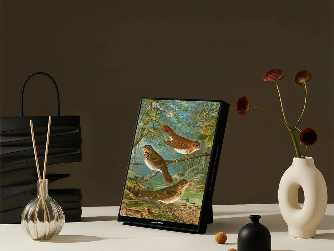作为阿米纳艺术音响性价比首选的X1 Mini,外观似画,内核是音响。采用阿米纳自研第5代DML分布式扬声技术,比传统喇叭发声方式更立体、更真实、更细腻。厚度仅3.5cm,居家户外都轻薄便携。油画肌理感的封面提升空间美学,且支持封面定制,自用/送人都是有声有色、别有新意。